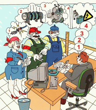 При появі будь-якої несправності електроприлад слід в першу чергу знеструмити. Відчувши при дотику до будь-якої металевої конструкції дію електричного струму - в першу чергу вжити заходів до недопущення в небезпечне місце людей. Після цього необхідно повідомити про несправності безпосередньому керівнику.